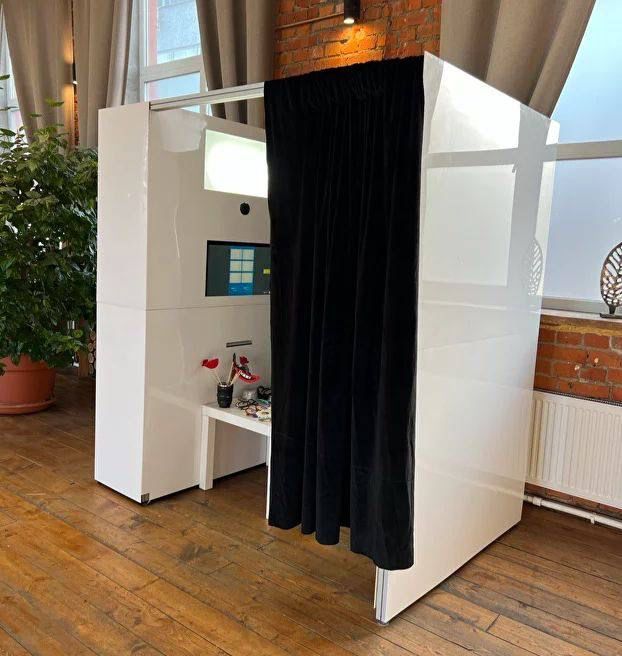 Наша фотобудка со студийным освещением для получения фотографий наилучшего качества. Мы можем предложить оформление с использованием логотипа вашей компании или же красиво написать название мероприятия. Можем принять полностью концепцию наших клиентов и дополнить её лишь необходимым реквизитом.